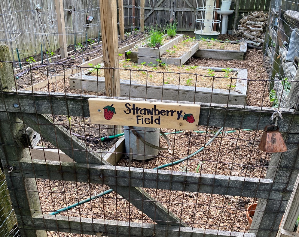 We have a hard time remembering what the beds are called so today I made name plaques for each vegetable/fruit bed.